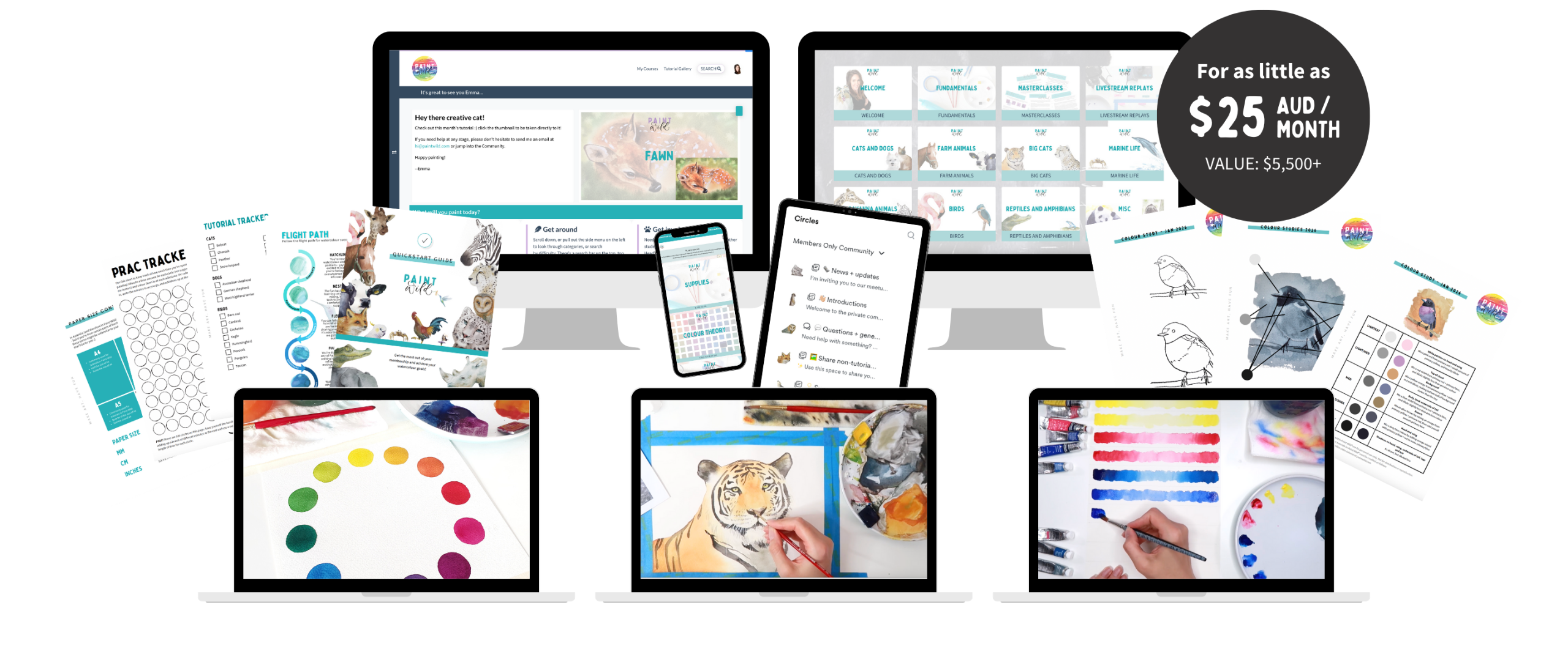 Instant access to everything you need to start painting the wildlife portraits of your dreams, with plans starting from just $25 AUD/month.